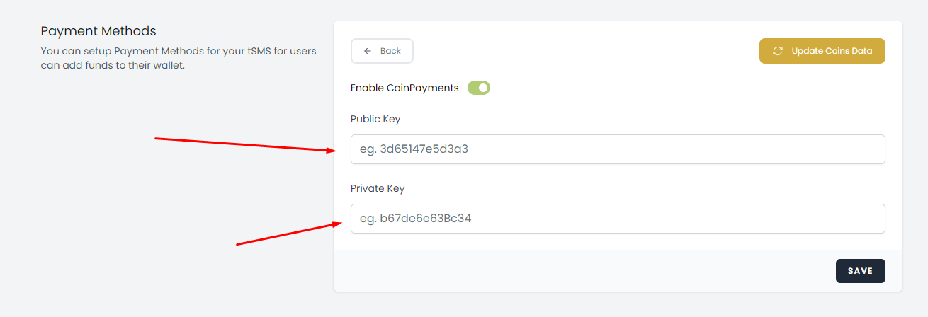 Your CoinPayments setup on tSMS is now complete. If you encounter any issues, please contact our support team for assistance.