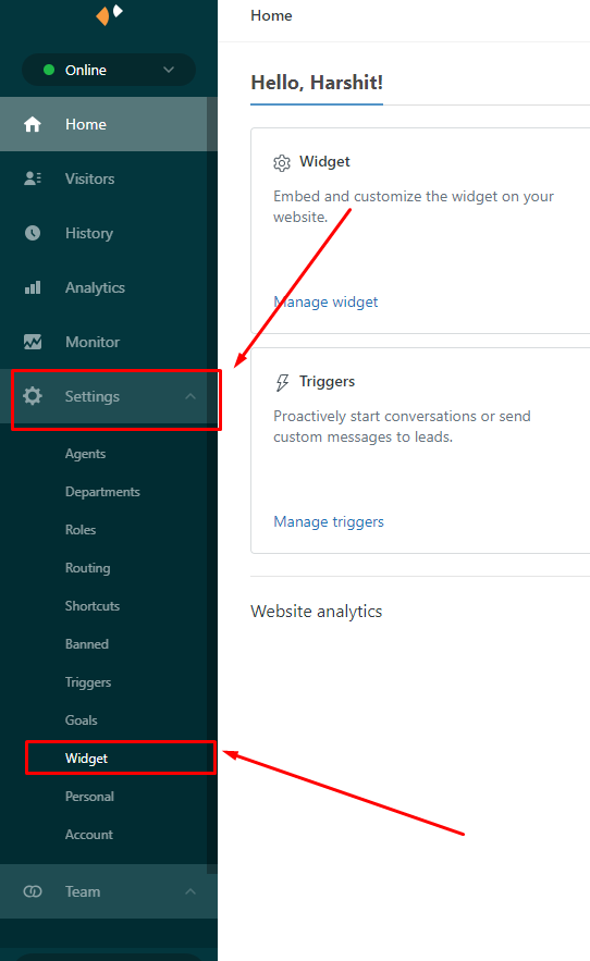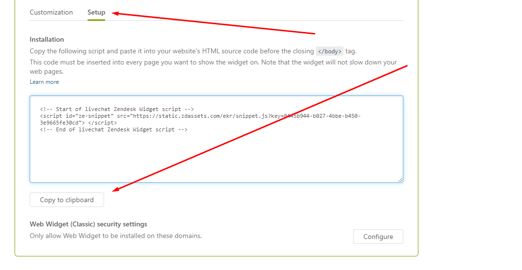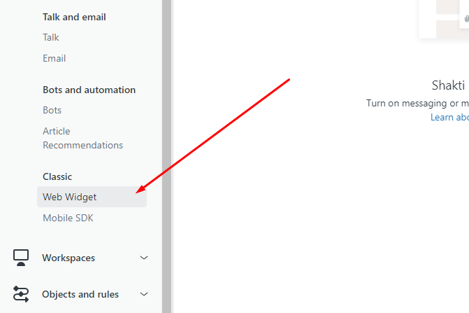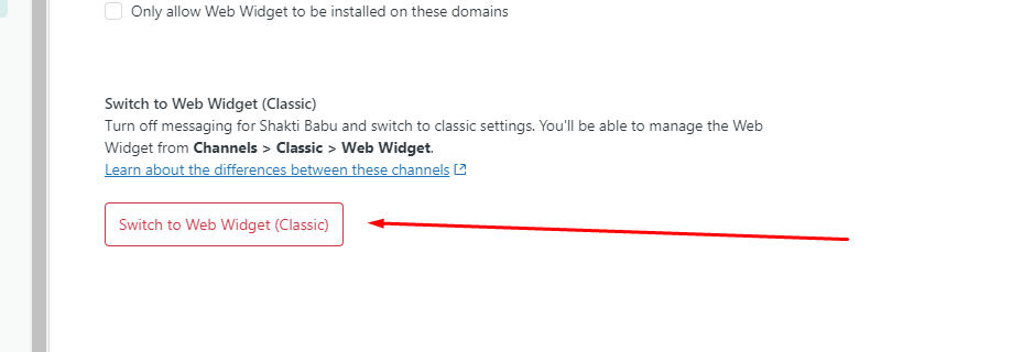 - Scroll down and click on the red button which says `Switch to Web Widget (Classic)`